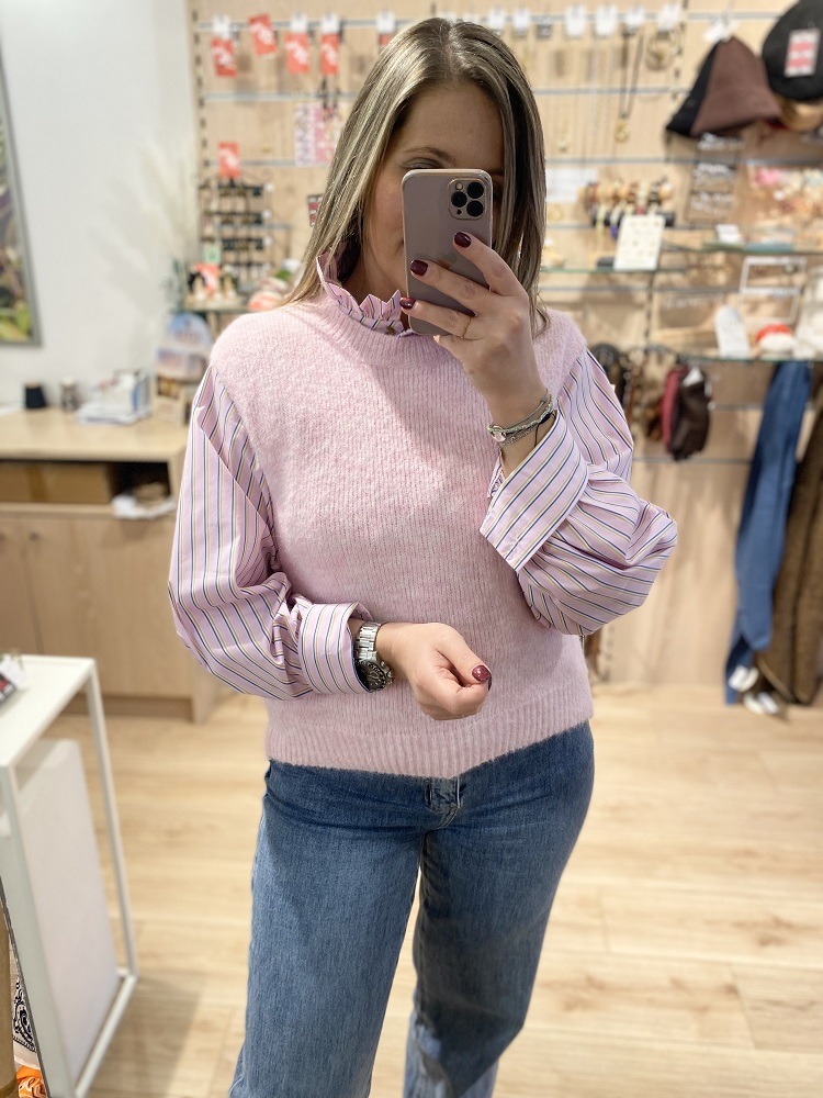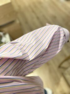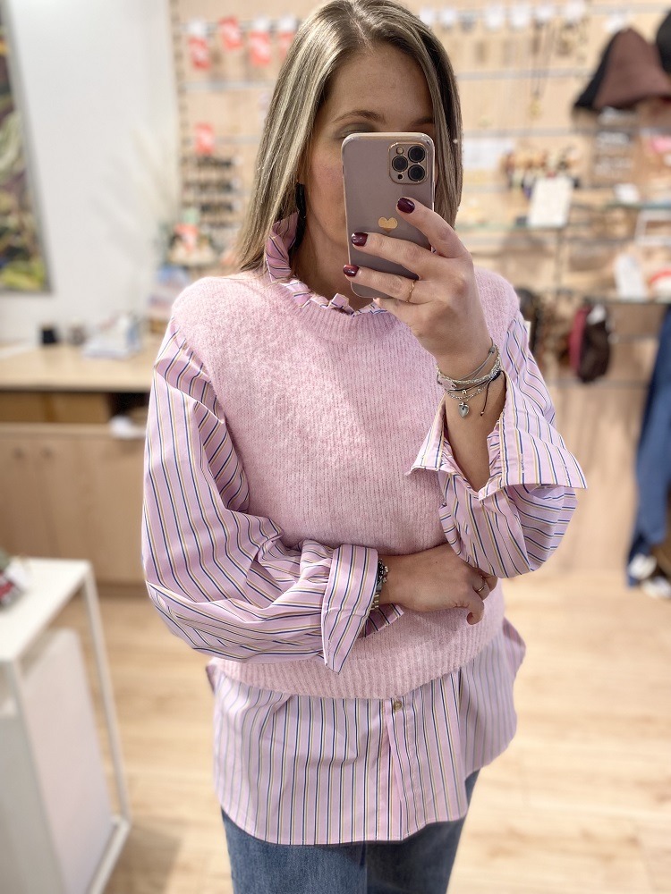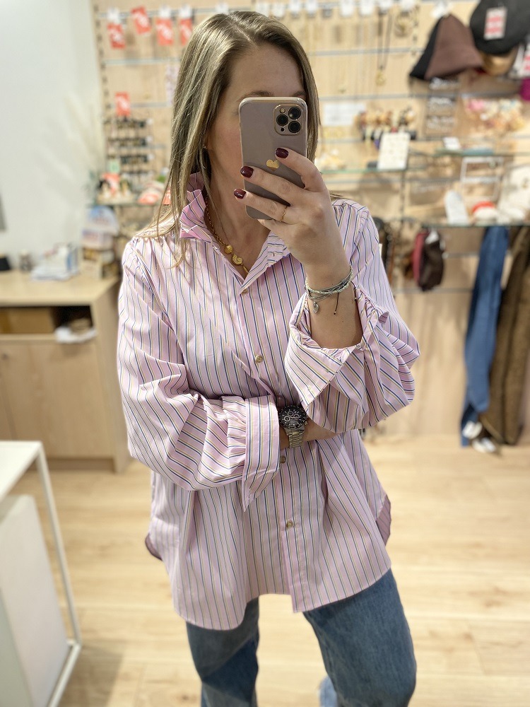 • Chemise rose rayée jaune et bleu