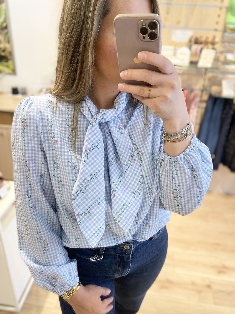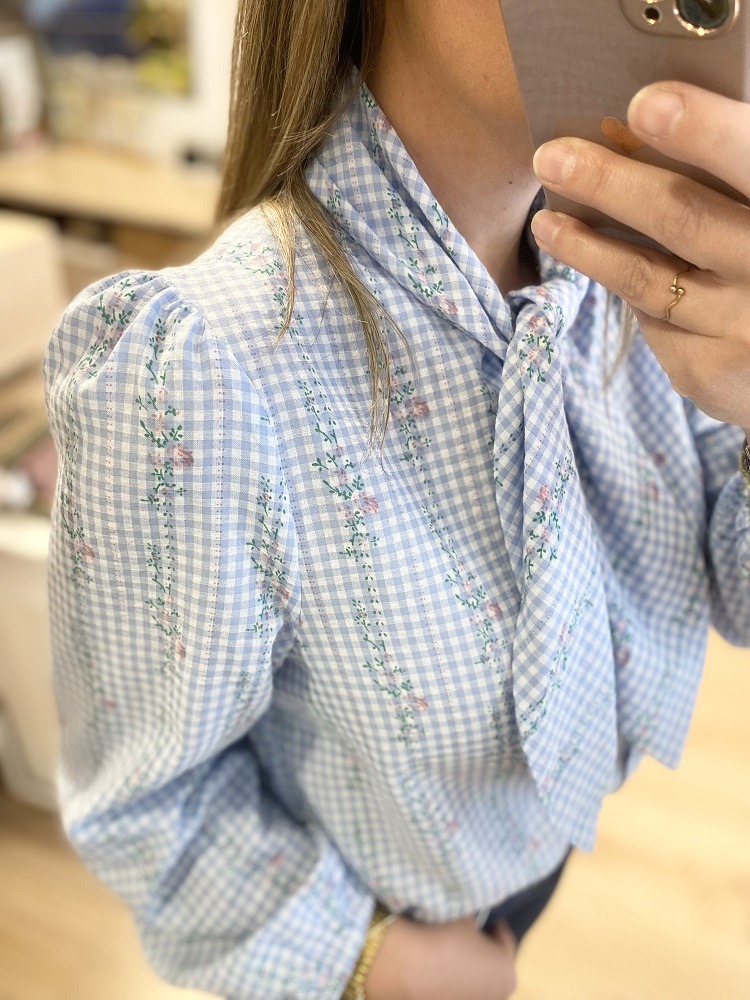 • Chemise vichy bleu ciel et blanc