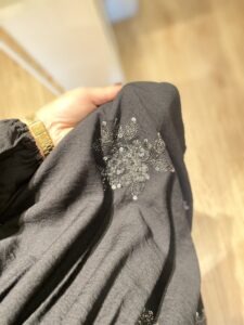 • Broderie fleurs strass et fil lurex argenté